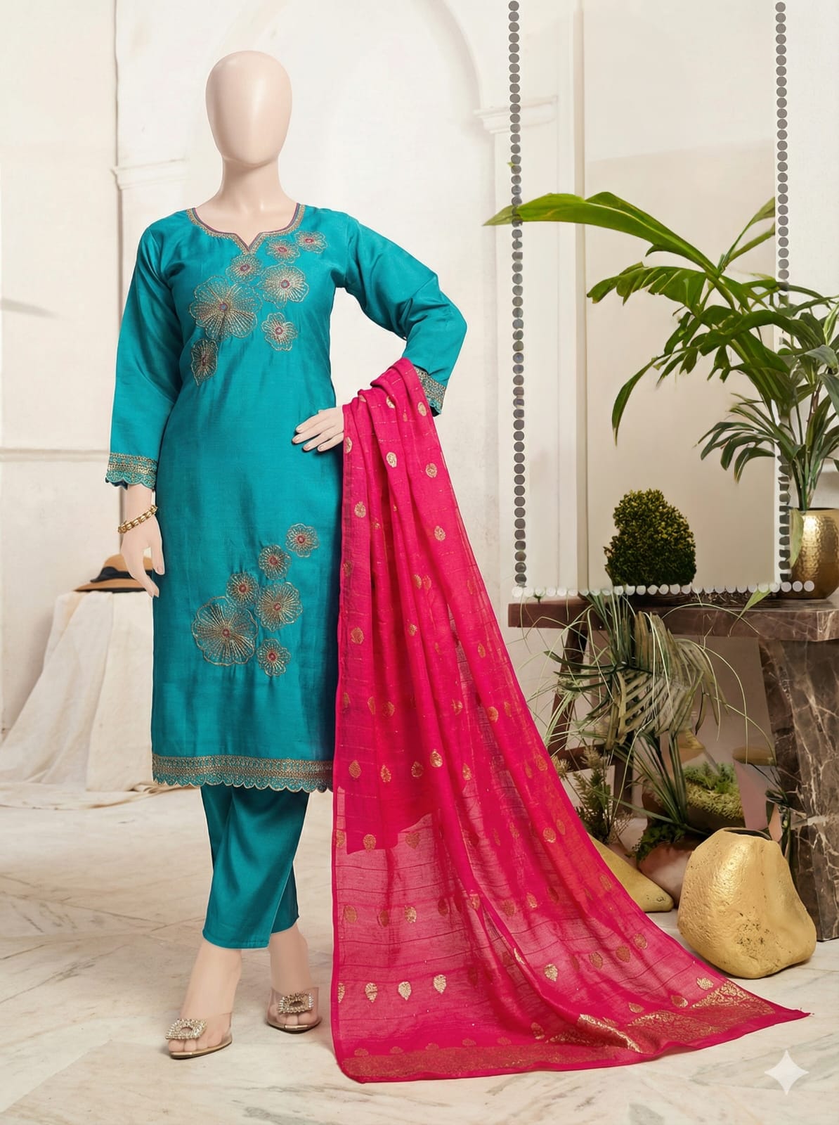 Elevate your style with our newly launched designer churidar set paired with matching pant & dupatta ✨